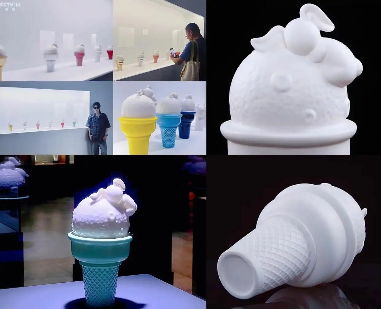 审美破界:以潮流符号解构白瓷固有基因大约十年前,Hery正式拉开这场名为“白瓷重构”的艺术实验。《月球甜筒》系列的横空出世,是他对白瓷的一次大胆告白。