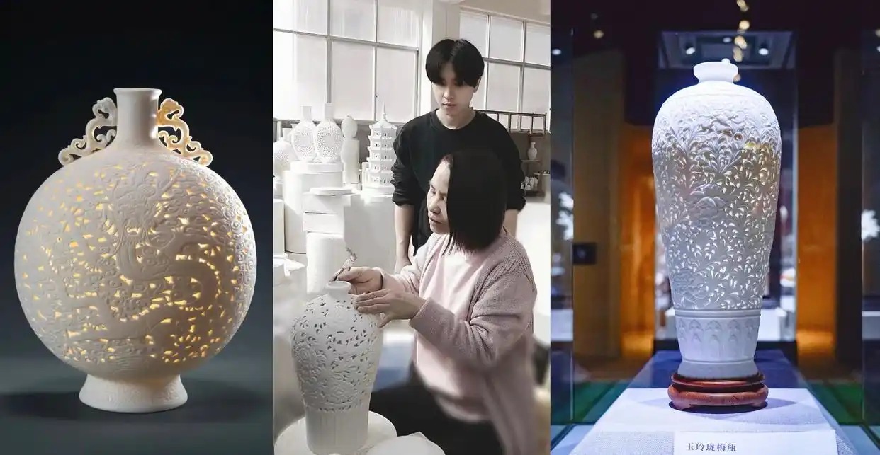 陈明华是中国白瓷领域的代表性人物,深耕通花瓷、薄胎瓷等传统工艺,作品多次作为国礼亮相重要外交场合。以其代表性的通花瓷为例,艺人需在薄如纸张的瓷胎上,以竹刀或金属雕刀绘纹透刻,融合塑、捏、刻、雕等技法,雕琢出形态各异、栩栩如生的纹饰与花卉,每一件作品都需耗费极大心力。这种对工艺的极限挑战,对Hery而言,既是难以逾越的艺术标杆,更是他想要突破的边界。